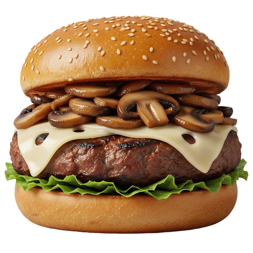 يُعدّ الفطر المقلي اللذيذ والجبن السويسري الكريمي الذائب من أبرز مكونات هذا البرجر الراقي. تُشكّل النكهات الغنية واللذيذة مزيجًا متناغمًا يجمع بين الراحة والفخامة.