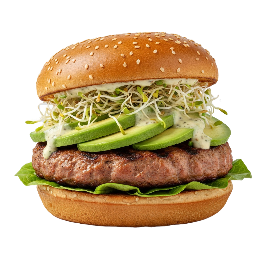 يتميز برجر كاليفورنيا بنكهة طازجة وحيوية، وغالبًا ما يحتوي على الأفوكادو والبراعم وصلصة خفيفة، وأحيانًا قطعة ديك رومي أو خضراوات. يُركز البرجر على المكونات الطازجة ونكهة أكثر حيوية.